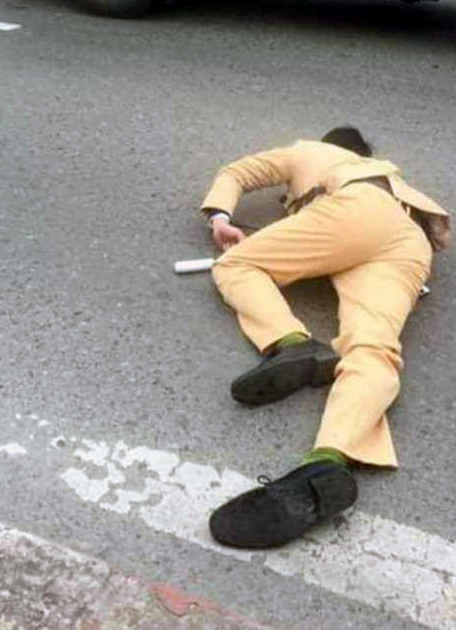 Cú đâm mạnh khiến chiến sĩ CSGT này bị thương, nằm bất động trên đường. Ngay sau đó, Trung uý CSGT được các chiến sĩ trong tổ công tác cùng người dân đưa đi cấp cứu. Đôi nam nữ đi xe máy bị giữ tại hiện trường.