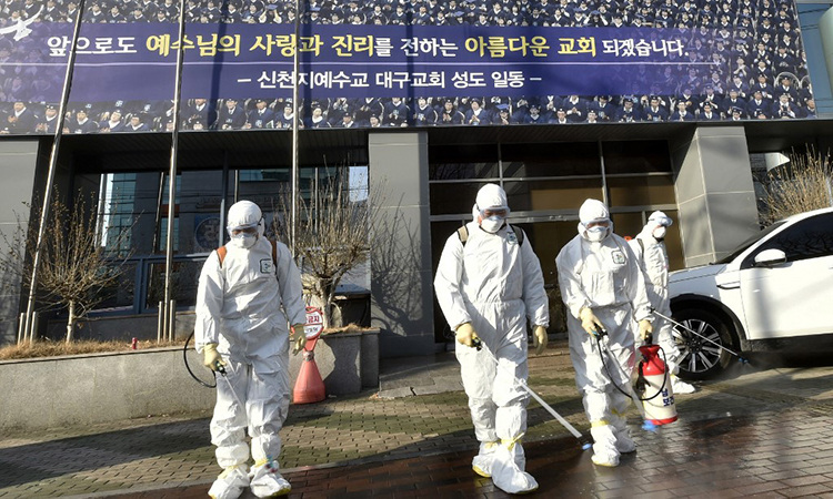 Toàn bộ 42 người nhiễm nCoV ở Daegu đều liên quan đến giáo phái Shincheonji (Tân Thiên Địa). Một thành viên của giáo phái được cho là đã lây bệnh cho ít nhất 43 người. Nữ tín đồ 61 tuổi của giáo phái nhập viện hôm 8/2 do tai nạn giao thông, từ chối xét nghiệm hai lần dù được yêu cầu. Sau đó người phụ nữ này bốn lần đi lễ nhà thờ Shincheonji trước khi được xác nhận nhiễm nCoV ngày 18/2.