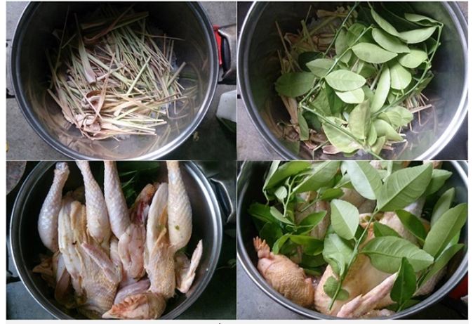 Với lá chanh rửa sạch rồi bạn thả lá rửa sạch, đập dập rồi cắt làm đôi. Tiếp đó, bạn hãy dùng một chiếc nồi có đường kính đặt vừa con gà, rải muối xuống đáy nồi rồi dàn đều. Rồi sau đó, bạn hãy rải đều một lượt sả sao cho kín muối rồi lại rải thêm một lượt lá chanh. Ban hãy đặt con gà lên trên cùng sao cho gà không chạm vào muối, đậy vung nồi lại rồi bắc lên bếp đun cho tới khi gà hấp chín thì thôi.