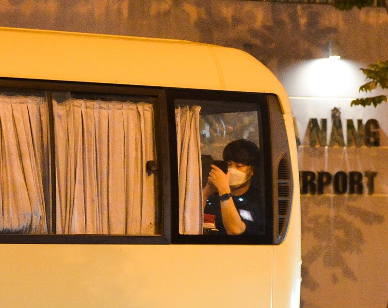 Khoảng hơn 22 giờ, xe chở nhóm du khách Hàn Quốc có nguyện vọng về nước di chuyển vào khu vực Nhà khách Cảng Hàng không quốc tế Đà Nẵng. Ảnh: XS