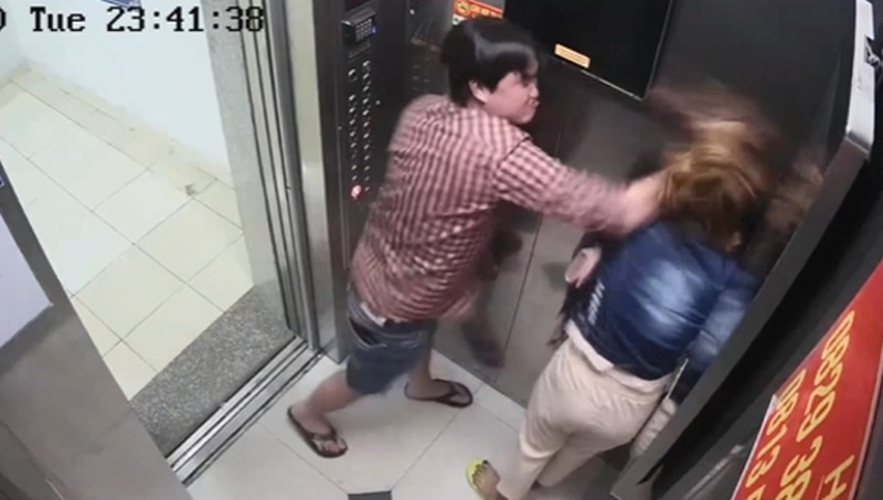 Không chỉ đánh người phụ nữ mà người đàn ông này còn giận dữ đá vào cửa thang máy nhiều lần. Thậm chí, sau đó thang máy có dấu hiệu hư hỏng và ngưng hoạt động.