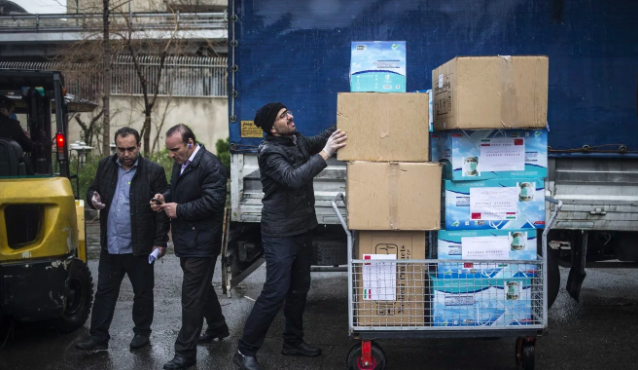 Nhân viên Bộ Y tế Iran nhận các thùng hàng khẩu trang được ủng hộ từ Trung Quốc. Ảnh: XinhuaRủi ro bùng phát dịch bệnh ở Iran và lây lan ra khu vực