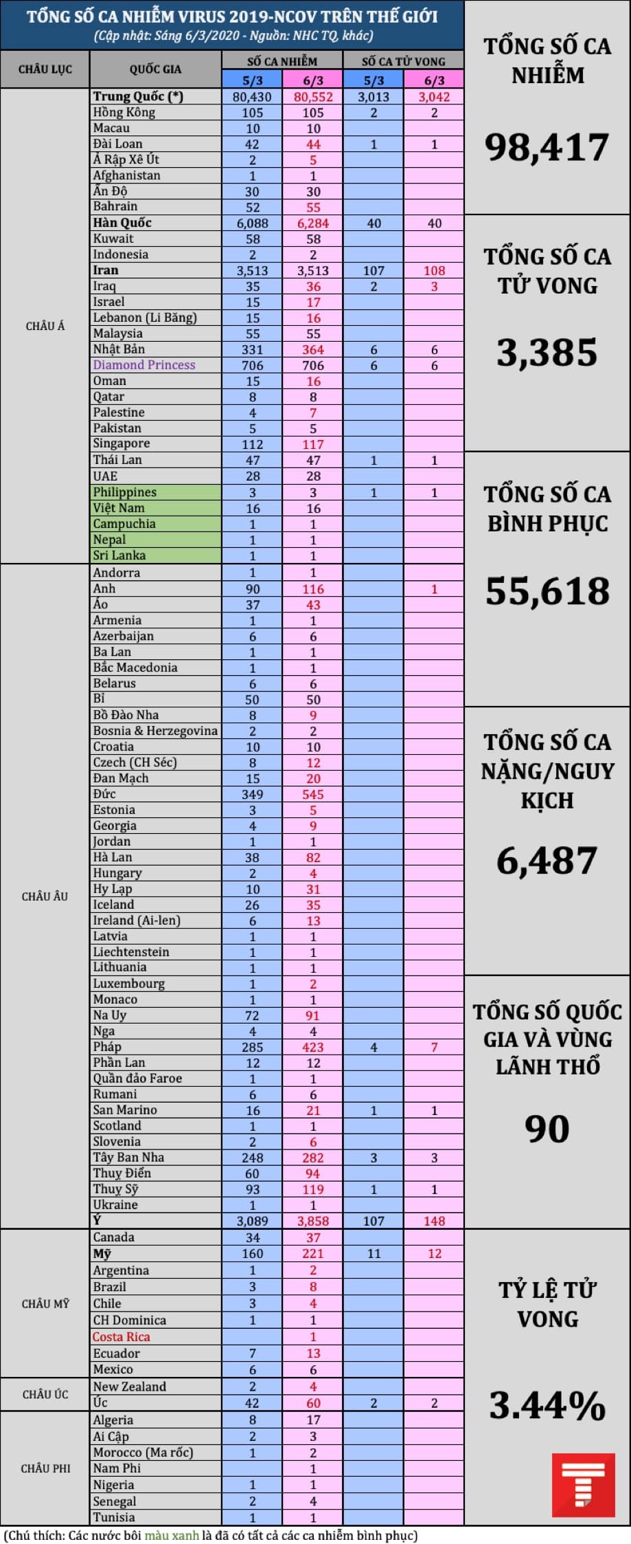 Old  Default Diễn biến dịch viêm phổi Vũ Hán trên TG (sáng 6/3)