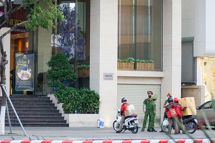 Khách sạn Vanda, nơi hai du khách Anh nhiễm Covid-19, đang được phong toả. Ảnh: Toàn Giáp.