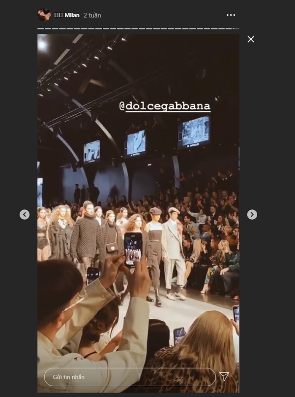 Sau đó, Tiên Nguyễn di chuyển sang Milan để tham dự show của nhà mốt Ý, cô update hình ảnh của mình trên story trang cá nhân instagram