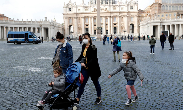 Dân địa phương đeo khẩu trang đi trên quảng trường St. Peter, Vatican ngày 6/3. Ảnh: Reuters