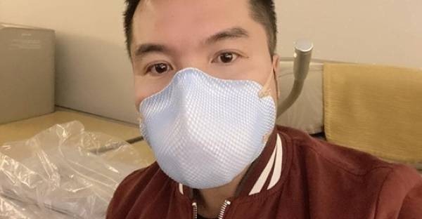 Anh Lương Trọng Nghĩa đeo khẩu trang trên máy bay