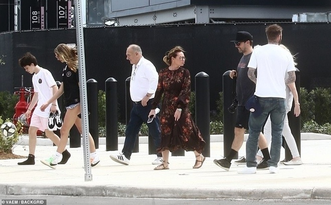 Hôm 14/3 (giờ địa phương), David Beckham đã đưa vợ cùng các thành viên trong gia đình đến sân vận động Inter Miami, Florida, Mỹ để luyện tập thể thao. Trong khi cựu danh thủ diện trang phục đơn giản với áo thun, quần jean, cựu thành viên Spice Girls trông thời trang hơn hẳn với trang phục tông đen cùng giày Chelsea hầm hố.