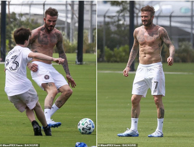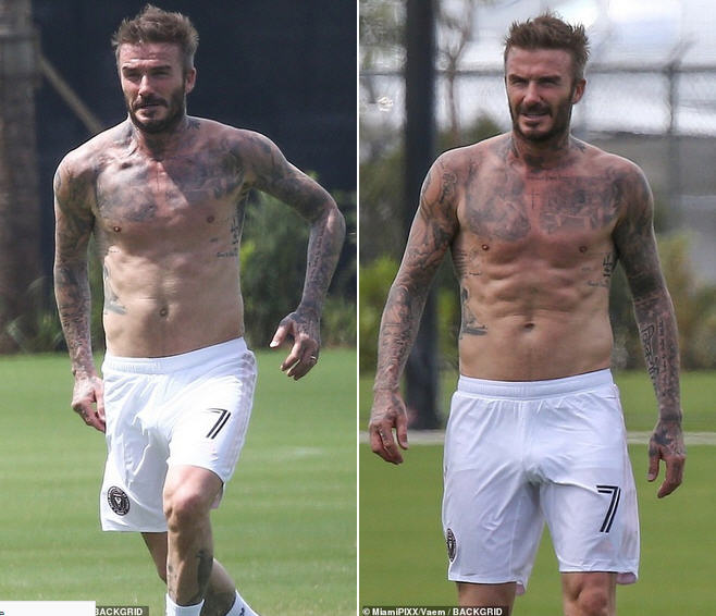 Tại buổi đá bóng giao hữu trong khuôn khổ gia đình, David hiếm hoi khoe cơ bụng 6 múi. "Không ngờ anh vẫn giữ được cơ thể như ngày nào, đúng là thần tượng của tôi", một bình luận trên tài khoản Tweeter được Dailymail trích dẫn.