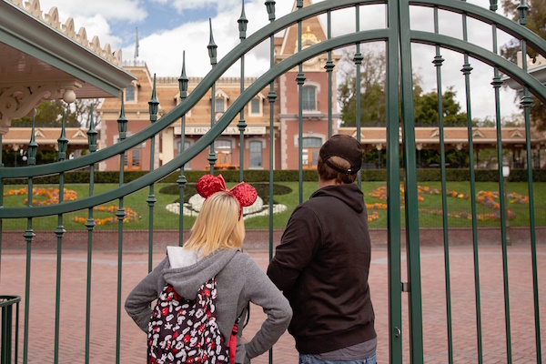 Du khách vẫn tới nhưng chỉ có thể nhìn Disneyland từ xa. Ảnh: Guardian.