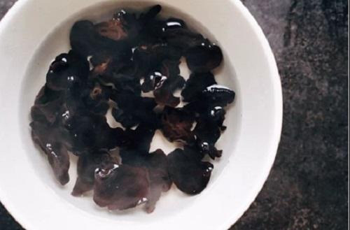 - Mộc nhĩ ngâm mềm bằng nước nóng sau đó rửa sạch lại.