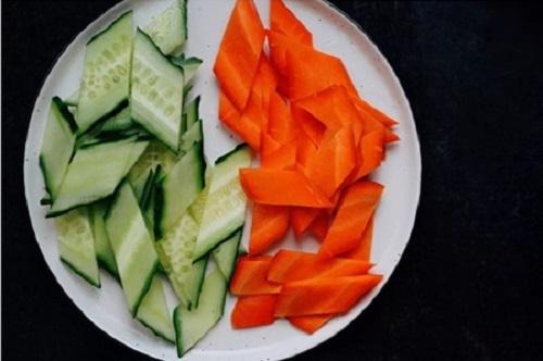 - Cà rốt và dưa chuột sơ chế sạch, cắt thành lát dạng quả trám.