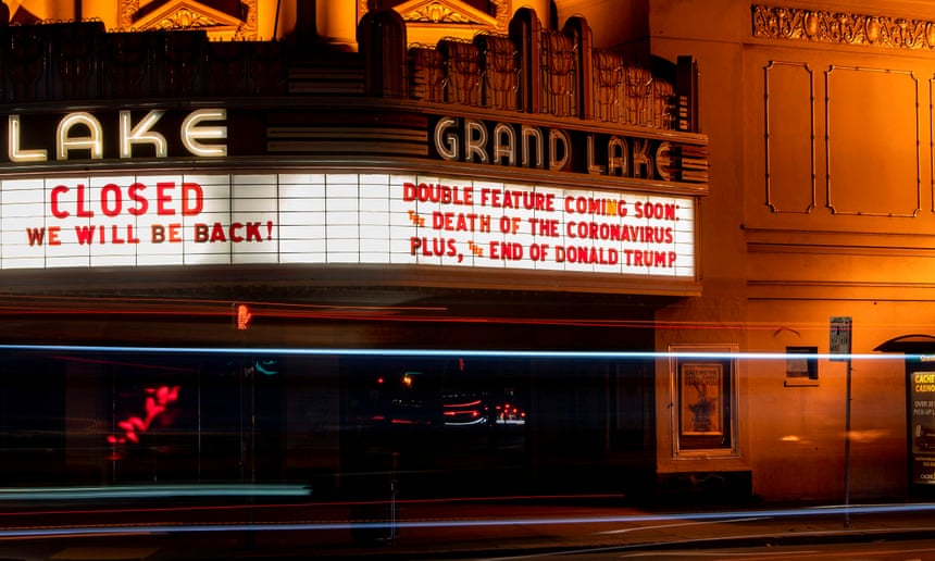 Quán Grand Lake ở Oakland thông báo đóng cửa vì dịch trên bảng điện tử. Ảnh: AFP /Getty Images