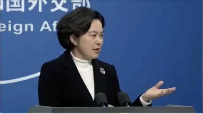 Người phát ngôn Bộ Ngoại giao Trung Quốc Hoa Xuân Oánh hôm 19/3 tiếp tục “vượt tường” đăng tweet khiến ngoại giới chú ý (Ảnh cắt từ video)