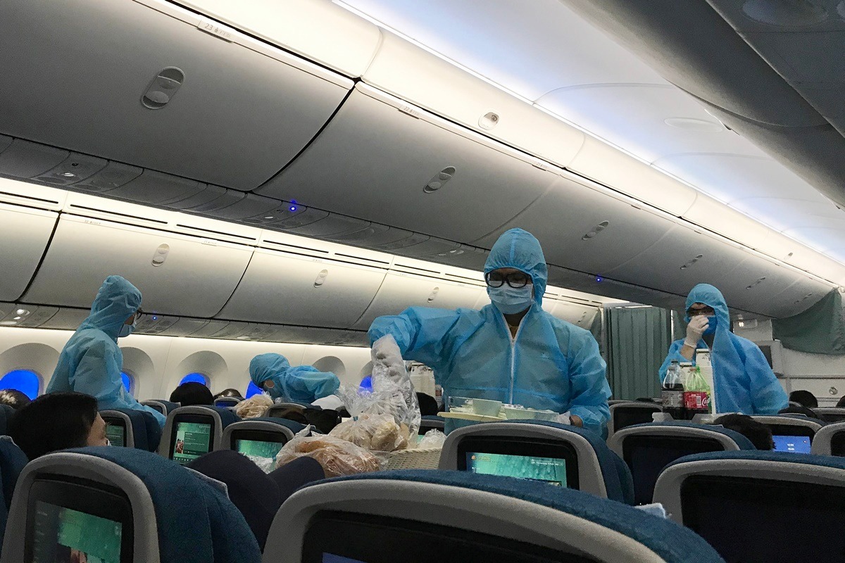 Khi bay được khoảng 6-7 tiếng, chúng tôi được thông báo máy bay sẽ không hạ cánh ở Tân Sơn Nhất (TP HCM) như kế hoạch. Thay vào đó, chúng tôi sẽ đến sân bay Cần Thơ vì đây là chuyến bay về từ vùng dịch. Tôi hơi hoang mang, sau đó nhanh chóng trấn tĩnh vì về được Việt Nam là tốt rồi.