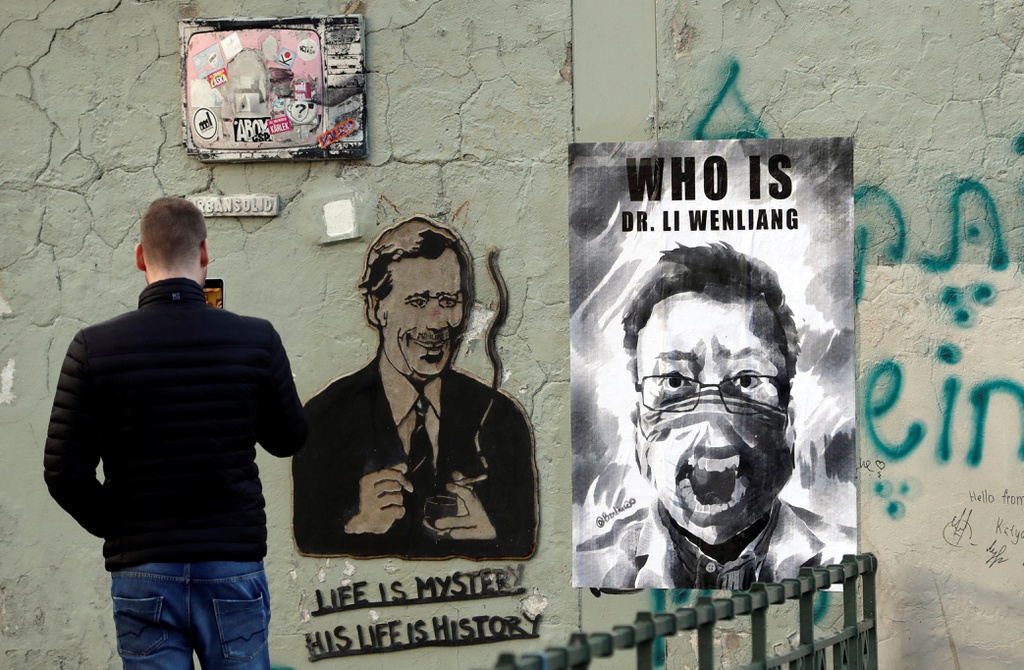Hình bác sĩ Lý Văn Lượng tại Prague, thủ đô Cộng hòa Czech. Bác sĩ Lý là một trong những người đầu tiên lên tiếng về dịch bệnh tại Vũ Hán, nhưng bị công an triệu tập cảnh cáo và sau đó đã qua đời vì nhiễm virus. Ảnh: Reuters.