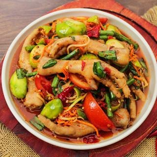 Chân gà xốt Thái chua ngọt giòn thơm sẽ đánh thức vị giác của bất kỳ ai. Chân gà xốt Thái được coi là "hậu duệ" của chân gà ngâm sả tắc đang gây bão trong hội chị em ham nấu nướng. Ưu điểm vượt trội của nó là đậm đà hơn, cay hơn, giòn hơn và ngon hơn.
