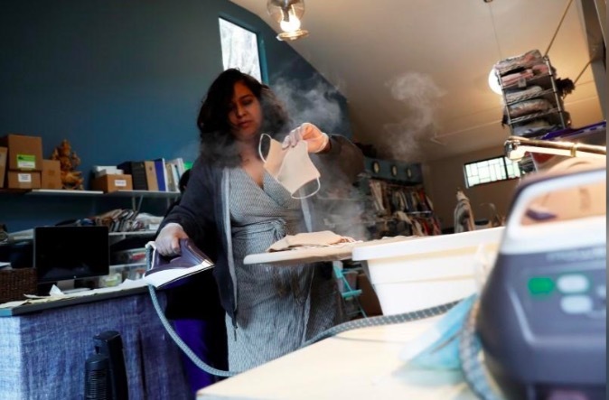 Sanita Paul thường may khăn và quần áo cho công ty thời trang nhỏ của cô từ năm 2003 nhưng kể từ khi dịch Covid-19 tấn công vùng Bay Area và gây ra t́nh trạng thiếu hụt các thiết bị bảo vệ cá nhân cho các nhân viên y tế, cô đă chuyển từ may khăn sang may khẩu trang.