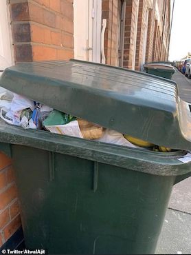 Thùng rác đầy ắp v́ nhiều đồ ăn hết hạn bị vứt bỏ. Ảnh: Twitter