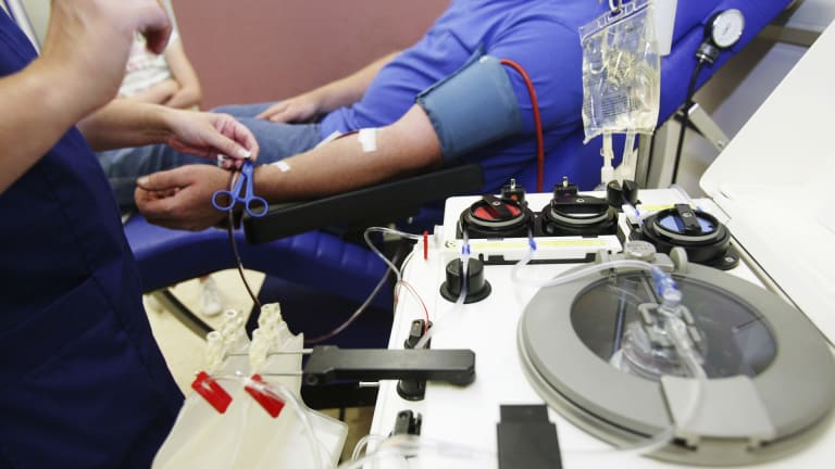 Bệnh nhân COVID-19 đã hồi phục đang hiến huyết tương để cứu các bệnh nhân khác. Ảnh: Getty Images