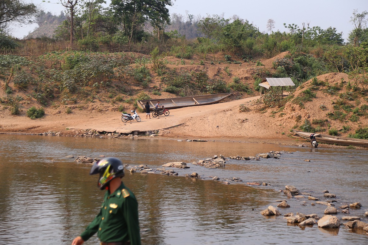 Nước sông Sê Pôn cạn khô khiến việc vượt biên từ Lào vào Việt Nam trở nên dễ dàng. Ảnh: Hoàng Táo