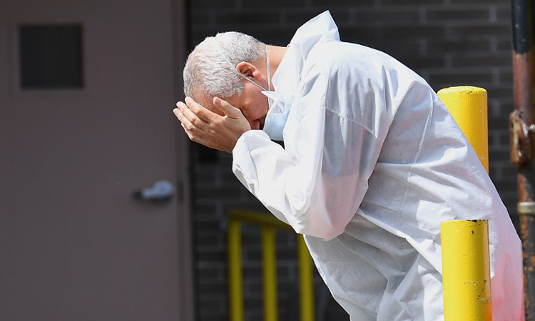 Một nhân viên bên ngoài Trung tâm Y tế Wyckoff Heights ở thành phố New York, Mỹ hôm 7/4. Ảnh: AFP.