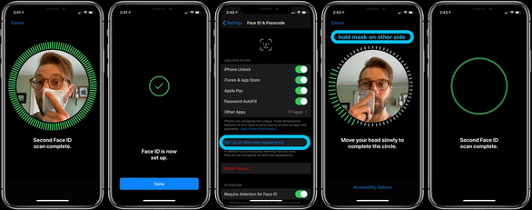 Nghe có vẻ phức tạp nhưng cách làm rất đơn giản và là kết quả tìm tòi của một nhóm nghiên cứu thuộc tập đoàn Tencent của Trung Quốc. Việc bạn cần làm là mở cài đặt, chọn thiết lập Face ID và dùng khẩu trang che một nửa khuôn mặt trong quá trình quét.