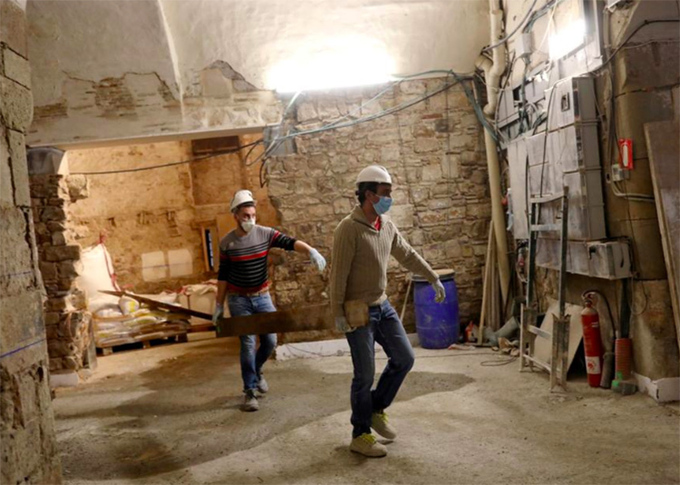 Công nhân xây dựng làm việc lại tại một công trường ở thành phố Barcelona, Tây Ban Nha hôm 14/4. Ảnh: Reuters