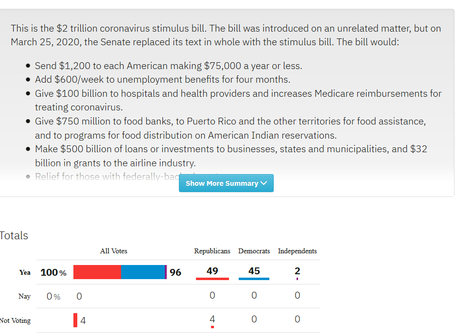Tôi nghĩ đây là đòn tâm lý quá tuyệt chiêu của phe Dân chủ.. Tôi khen thật   .............Vì Nếu bên Thượng viện CH và Trump không thông qua , cho rằng cái Bill đó sẻ làm thâm thũng ngân sách 1 cách tồi tệ thì bên dân chủ sẻ có cớ : "đó thấy chưa tụi tao lo cho dân mà phe CH hay Trump vô nhân đạo" Please vote for DC ..