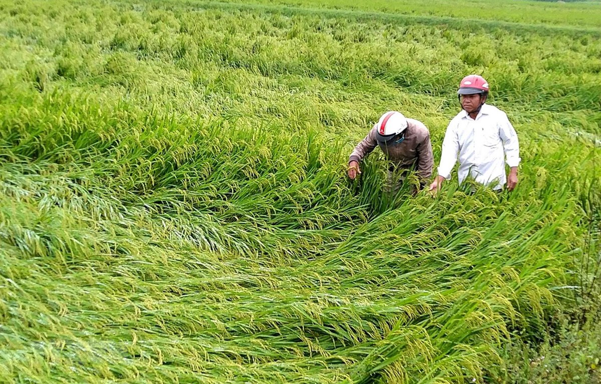 Mưa lớn hiếm gặp từ 12 - 14/4 ở miền Trung gây đổ ngã nhiều diện tích lúa. Ảnh: TTXVN.