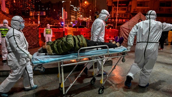Bệnh nhân Covid-19 được đưa đến bệnh viện ở Vũ Hán