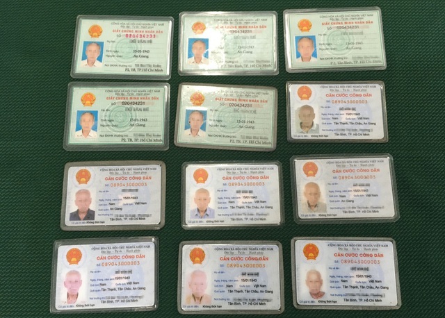 5 giấy chứng minh nhân dân và 7 căn cước công dân đều trùng tên, năm sinh, nguyên quán và nơi đăng kí hộ khẩu thường trú của ông Đ.