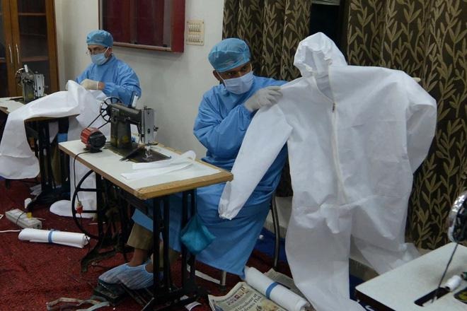 Cảnh sát Ấn Độ may đồ bảo hộ trong bối cảnh thiếu hụt nguồn cung và chất lượng kém của hàng nhập khẩu. Ảnh: Tân hoa xã