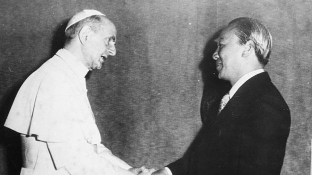 Tổng thống Thiệu trong một lần gặp gỡ Giáo hoàng Paul VI tại Vatican, khoảng năm 1970