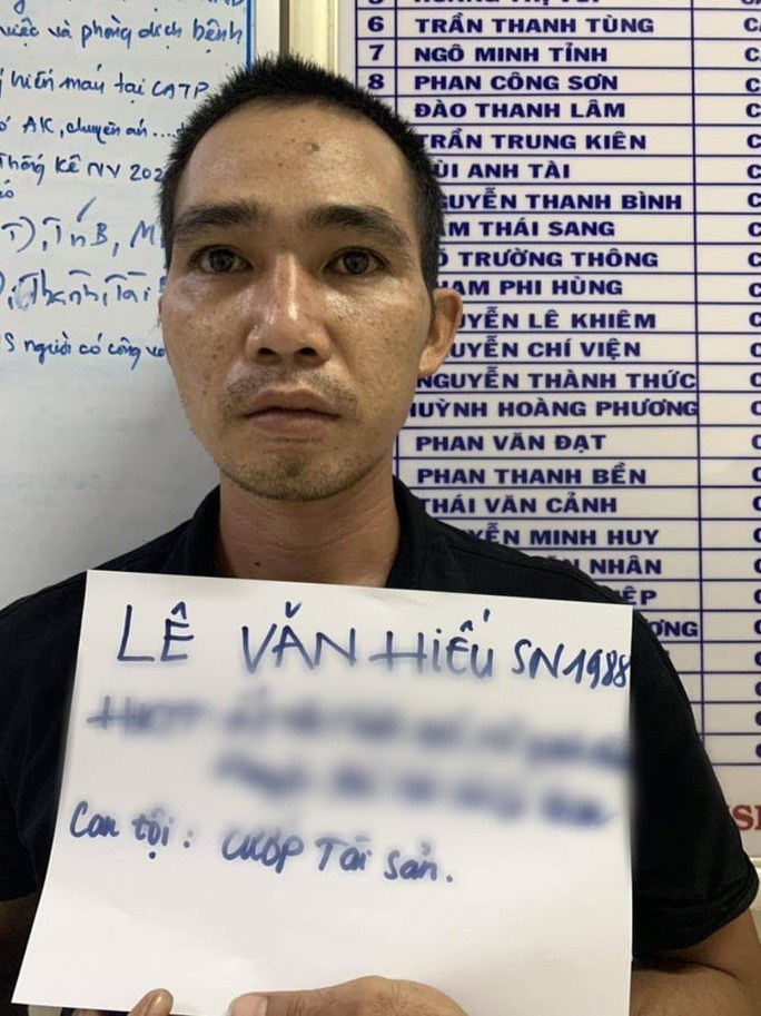 Cơ quan CSĐT Công an huyện Bình Chánh (TPHCM) cho biết đang tạm giữ hình sự Lê Văn Hiếu (SN 1988, sống lang thang) và Tống Thị Ngọc Yến (SN 1988, ngụ quận 11, TP HCM) để điều tra về hành vi “Cướp tài sản”.