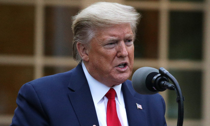 Trump họp báo tại Nhà Trắng hôm 22/4. Ảnh: Reuters.