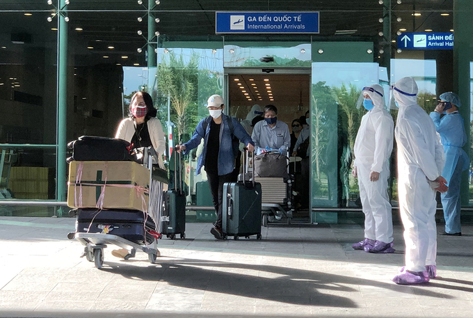 Tất cả hành khách đi trên chuyến bay VJ812 đáp xuống sân bay quốc tế Cần Thơ chiều 24/4. Đây là đợt tiếp nhận đầu tiên của sân bay này sau khi nới lỏng cách ly xã hội.