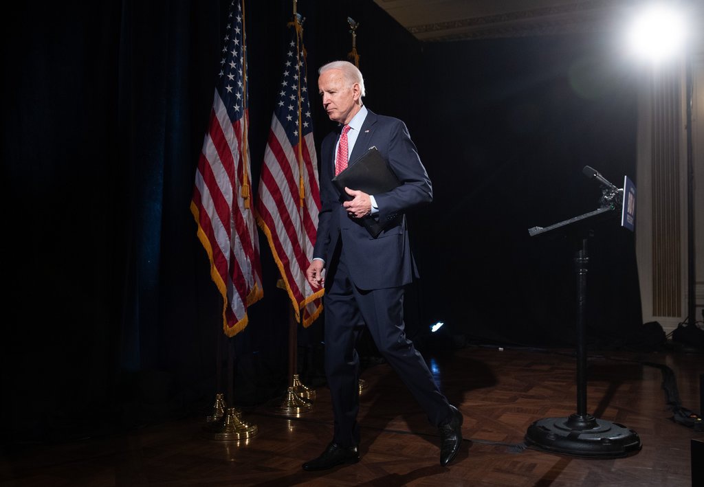 Cựu phó tổng thống Mỹ Joe Biden tại cuộc họp báo ở bang Delaware hồi tháng 3. Ảnh: Getty Images.