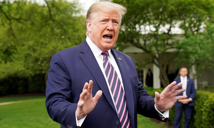 Tổng thống Mỹ Donald Trump trả lời phóng viên bên ngoài Nhà Trắng hôm 5/5. Ảnh: Reuters.