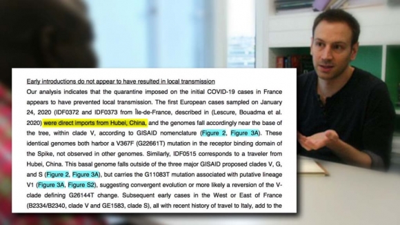 Nhân dân Nhật báo bóp méo phát biểu của ngà nghiên cứu Etienne Simon-Lorière của Viện Pasteur, phủ nhận virus có nguồn gốc từ Trung Quốc. Tuy nhiên, luận văn cho biết, mẫu bệnh thu thập đầu tiên ở châu Âu ngày 24/1/2020 là IDF0372 và IDF0373 đến từ Île-de-France, là các ca bệnh truyền trực tiếp từ Hồ Bắc Trung Quốc vào. (Ảnh: Trang chủ Facebook của Viện Pasteur Paris / ảnh chụp luận văn).