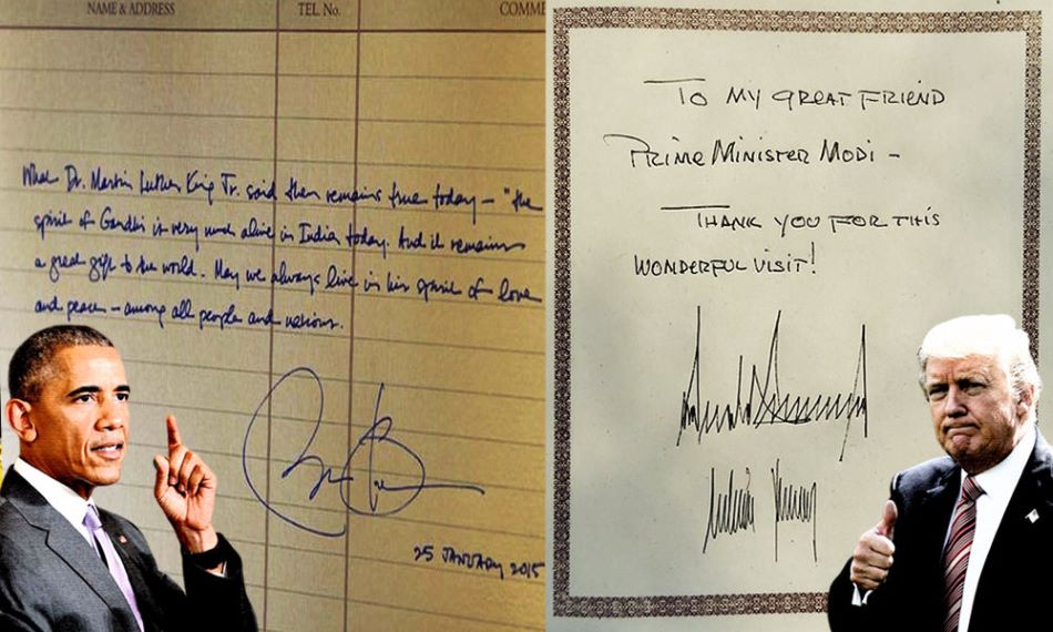 Trời ơi là trời, như vậy là Donald Trump và Melania Trump hoàn toàn thiếu kiến thức về Thánh Ganhdi. Không có ai đi viếng truy điệu chủ nhà mà lại ký vào sổ lưu niệm và cám ơn người dắt tới hết. Trump có thể không biết Trump đang thăm truy điệu Thánh Ganhdi hay tới đền Sabarnati Ashram đễ làm cái gì nửa?
