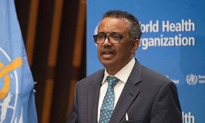 Giám đốc WHO Tedros Adhanom Ghebreyesus phát biểu khai mạc WHA tại Geneva, Thụy Sĩ, hôm qua. Ảnh: AFP.