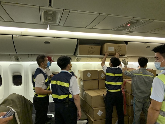 Các máy bay được thuê chở thiết bị bảo hộ y tế sẽ chứa hàng ở cả khoang vốn chở khách. Ảnh: SCS