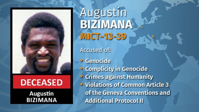 Ông ta được cho là đã qua đời vào khoảng tháng 8/2000, "dựa trên kết quả nhận dạng thuyết phục đối với hài cốt Bizimana trong một ngôi mộ ở Pointe Noire, Cộng hòa Congo", Cơ chế Tòa án Hình sự Quốc tế (MICT) nói trong thông cáo hôm 22/5, theo AFP.