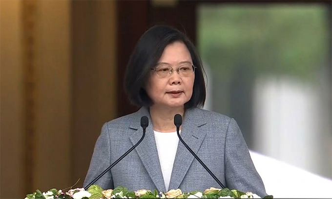 Lãnh đạo Đài Loan Thái Anh Văn trong lễ nhậm chức lần hai, ngày 20/5. Ảnh: NHK.