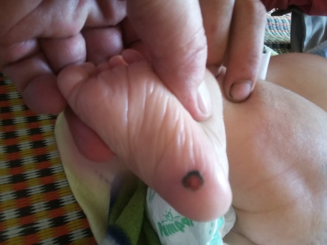 Các bác sĩ khoa Nhi, Bệnh viện Đa khoa khu vực Nghĩa Lộ (Yên Bái) vừa tiếp nhận bé C. (một tháng tuổi) được bệnh viện huyện chuyển đến trong bệnh cảnh nặng nề. Bé bú kém, da xanh nhợt, khó thở, bụng chướng,... Đặc biệt, bé có vết chợt loét vùng mông, lòng bàn chân.