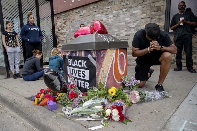 Nhiều người bày tỏ sự tiếc thương với cái chết của George Floyd ở gần nơi vụ bắt giữ gây phẫn nộ diễn ra trước khi nạn nhân qua đời ở Minneapolis. Ảnh: Zuma Press.