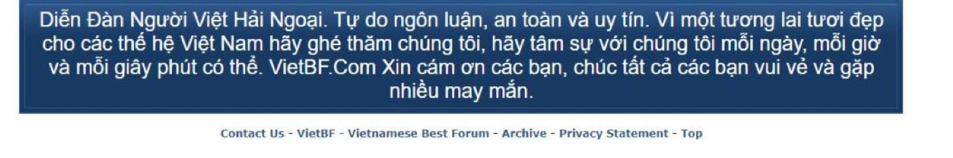 VIETBF mà bắt thì các MODS tự sướng với nhau luôn , ai mà vô, thời nay forums đã hết thời rồi, nói thật cái forum nầy cũng le que có vài mạng, toàn là nicks ảo chửi lộn thì nhiều