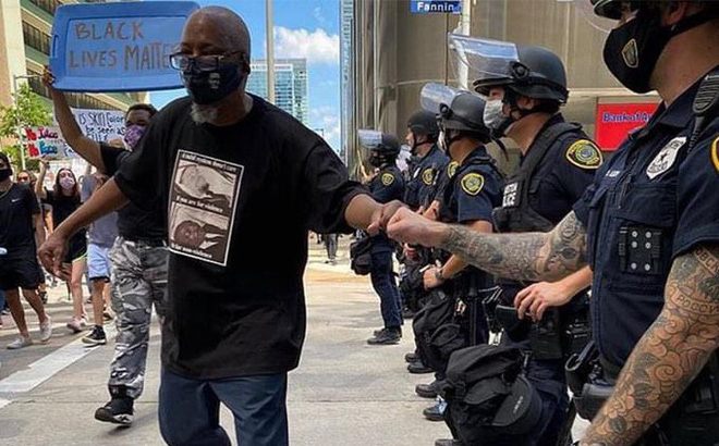 Cụ thể, theo RIA Novosti, trong bức hình được phóng viên địa phương Steve Campion đăng tải trên tài khoản Twitter cá nhân kèm dòng tweet: "Một hình ảnh mạnh mẽ! Một người đàn ông tham gia phong trào biểu tình George Floyd đã chạm nắm đấm [một kiểu chào hỏi phổ biến ở Mỹ] với một sĩ quan cảnh sát Houston trên đường tiến về tòa thị chính".