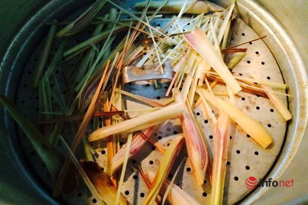 - Bia lon các bạn cho vào nồi, đặt nồi hấp cách thủy lên và cho phần sả đập dập vào.